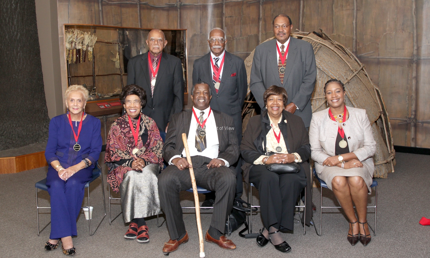 2014 Ubora Award recipient Jerald “Jay” Griffin (seated center) with previous award recipients, standing from left: Dr. Albert Garner (2011), Chester Gibbs (1999), Jesse Lanier (2004); seated from left: Bettye Webb (1996), Geraldine Garner (2011), Griffin (2014), Barbara Lanier (2004), and Denise Jordan (2007).