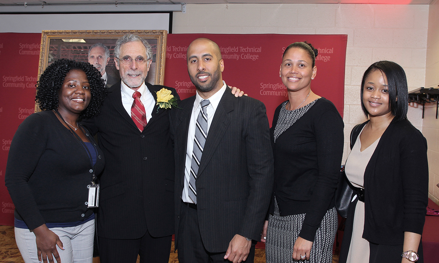 Springfield Technical Community College President Ira H. Rubenzahl with STCC Diversity Council Speaker Maria Hinojosa and POV Editor Marjorie J. Hurst and Publisher Frederick A. Hurst.