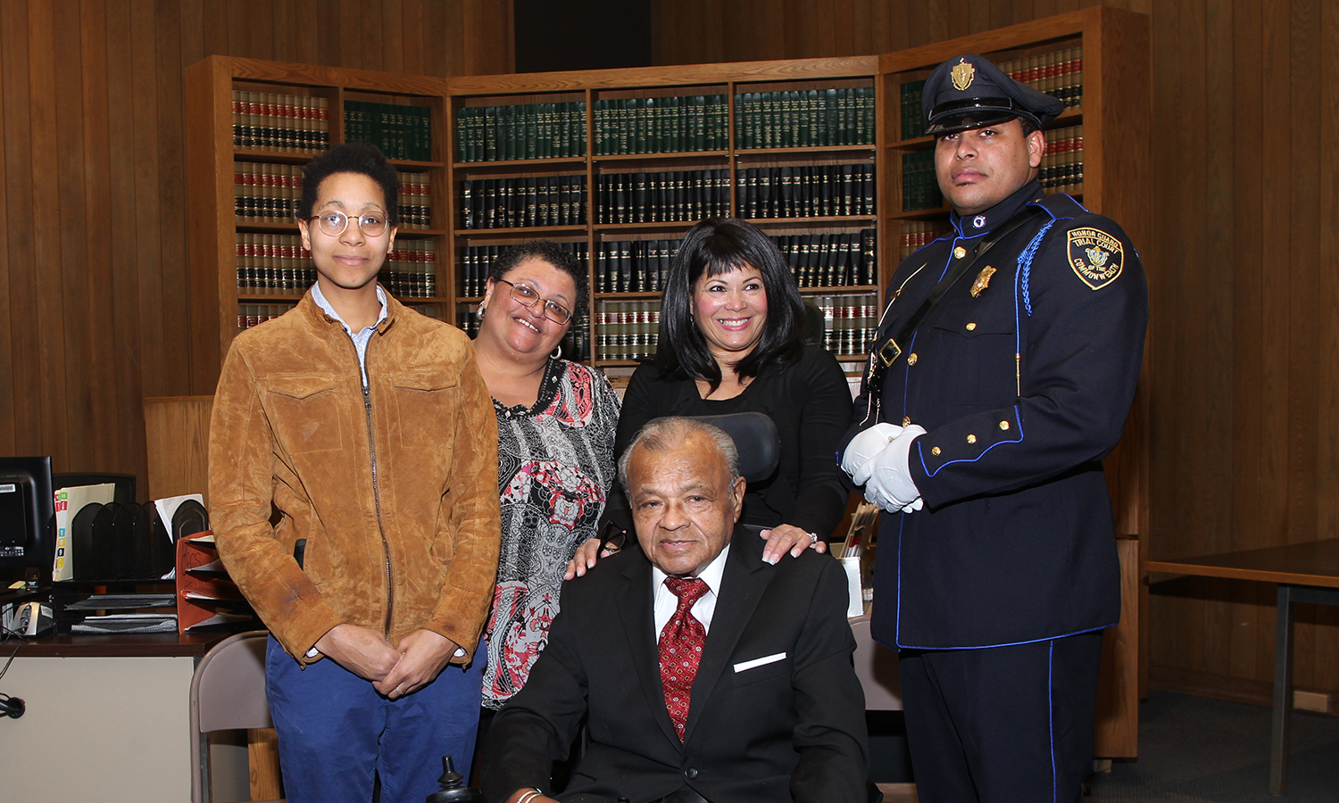 Mayor Domenic J. Sarno read “A Home Run For Bunny to Mrs. Adona’s 3rd grade class at Pottenger School on Tony King’s birthday. L to R: Principal Valerie L. Williams; Sarno; Tony King, portrayed in the book; Richard Andersen, author of the book; and Springfield Superintendent of Schools Daniel J. Warwick.