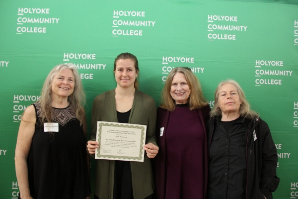 Scholarship recipient Sage Pasquale of Holyoke with HCC professor Kate Maiolatesi, far left, and her sisters, who endowed an HCC Foundation Scholarship in memory of their mother, Jolayne Hinkel.